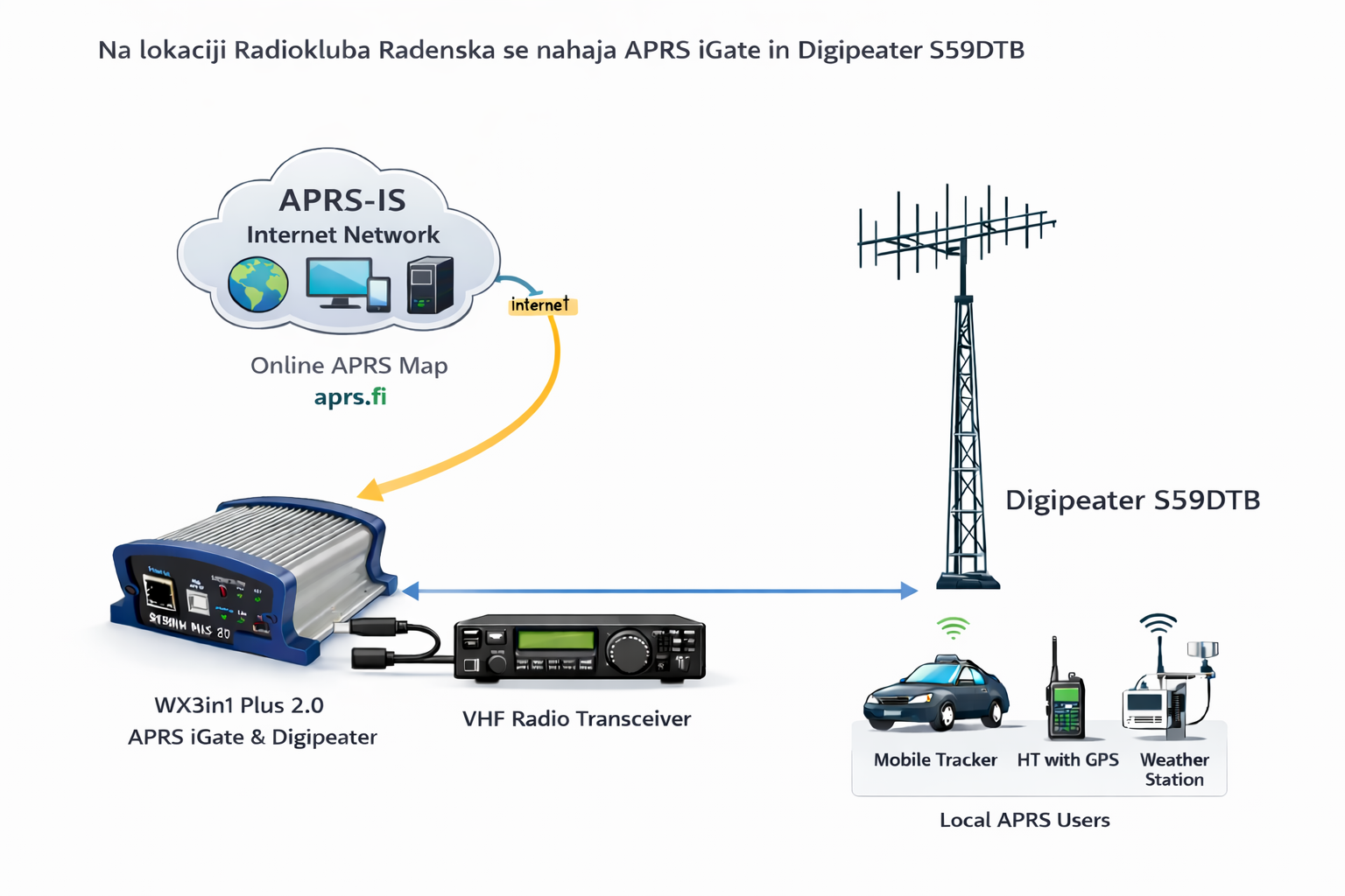 Na lokaciji Radiokluba Radenska deluje APRS iGate in Digipeater, sestavljen iz WX3in1 Plus 2.0 enote in radijske postaje, ki omogoča radijsko pokritost približno 150 km radiusa.